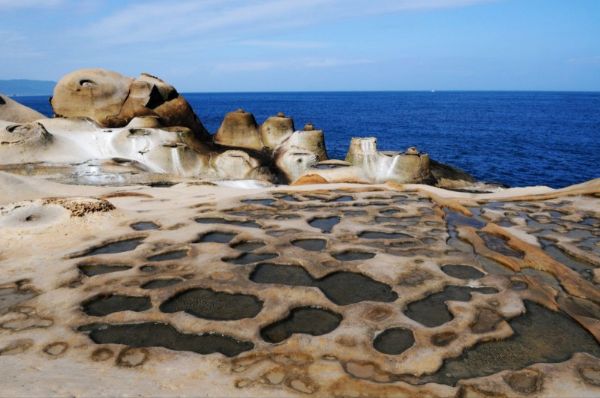 野柳地质公园,是台湾东北部景区。据说,因地壳运动,导致野柳地区的陆地山脉延伸进入海中成为岬角。之后,经过大自然千万年的洗礼,岩石风化,海水侵蚀,于是便塑造了它今日的各种惊世奇观。